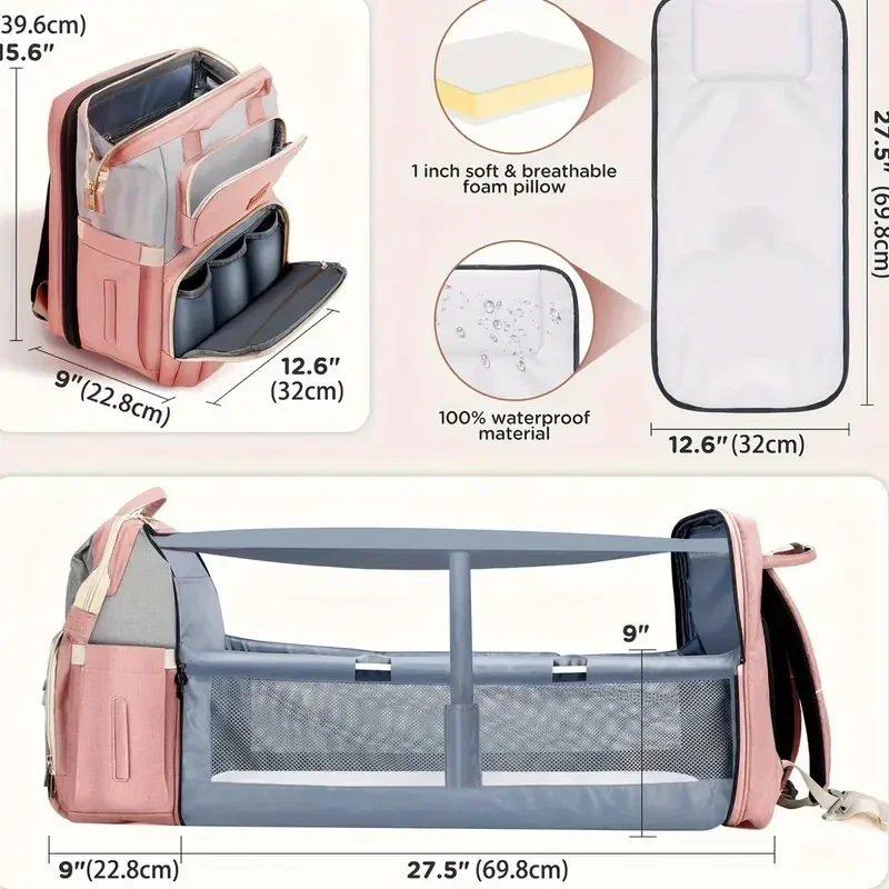 Diaper Bag Backpack, Multifunctional Portable Travel Bags, 900D Waterproof Diaper Bag With Changing Station