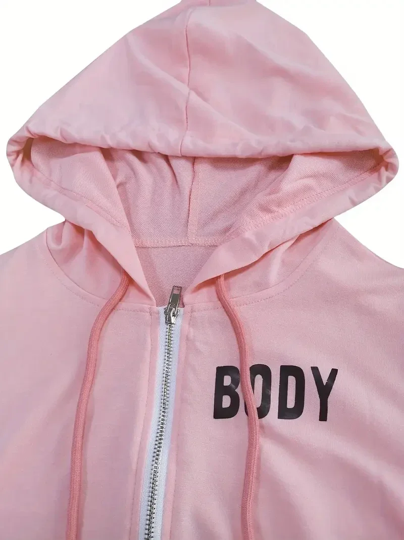 [Letter Print Hoodie] Two-Piece Hoodie - European and American Women's Sweatshirt - Letter Print Casual Print Sports Suit
