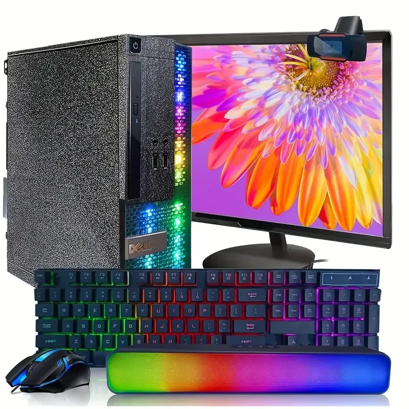 PC Black Treasure Box RGB Dell Desktop Quad Core I5 Up to 3.6G, 16G, 512G SSD, WiFi, RGB Gaming Keyboard & Mouse, DVD, New 24" 1080 FHD LED, RGB Sound Bar, Win 10 Pro (Renewed)