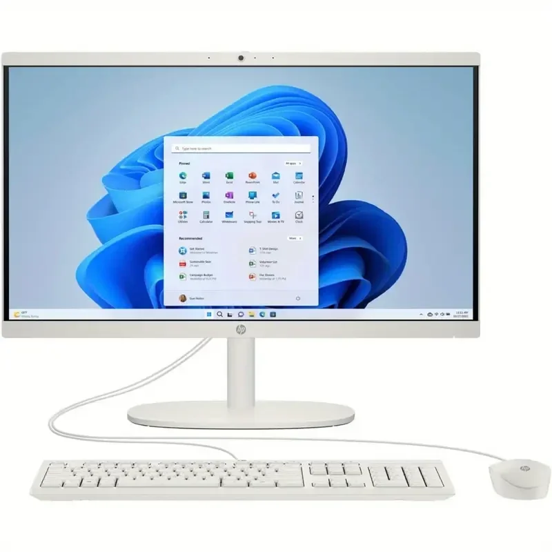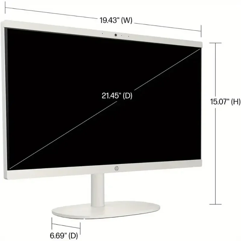 HP All-in-One Desktop, 21.5 FHD Display, Intel Celeron J4025 Processor, 4GB RAM, 128GB PCIe SSD, Intel UHD Graphics 600, Webcam, Wired Keyboard & Mouse, WiFi, Windows 11 Home in S mode