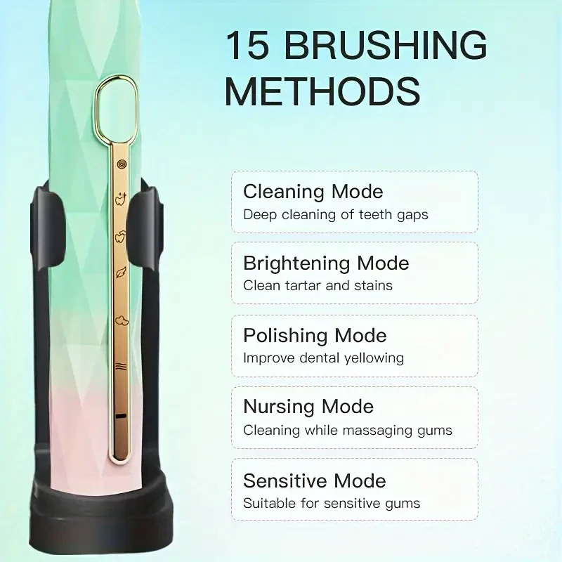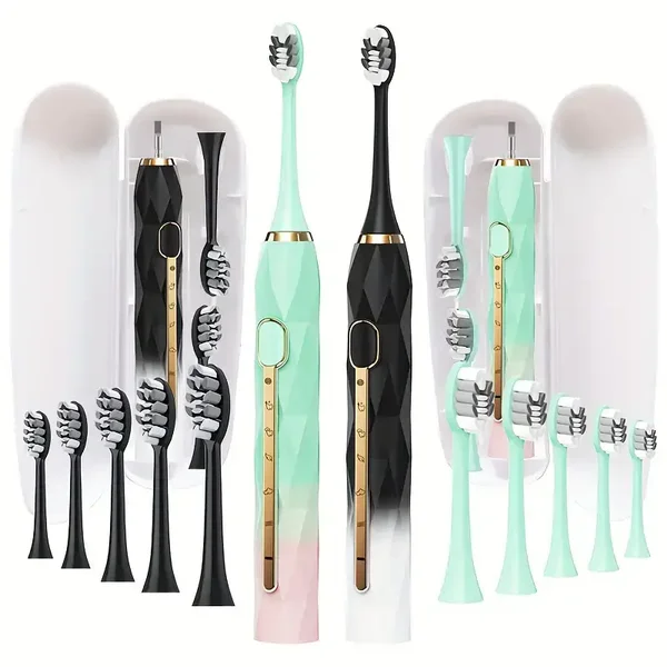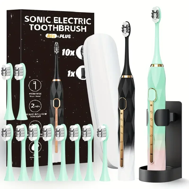Acoustic Electric Toothbrush USB Rechargeable Couple Rechargeable Metal Shaft Adult Man And Woman Rechargeable Toothbrush Intelligent Timer 10 Replaceable Toothbrush Heads 5 Colors A Toothbrush Base A Portable Case