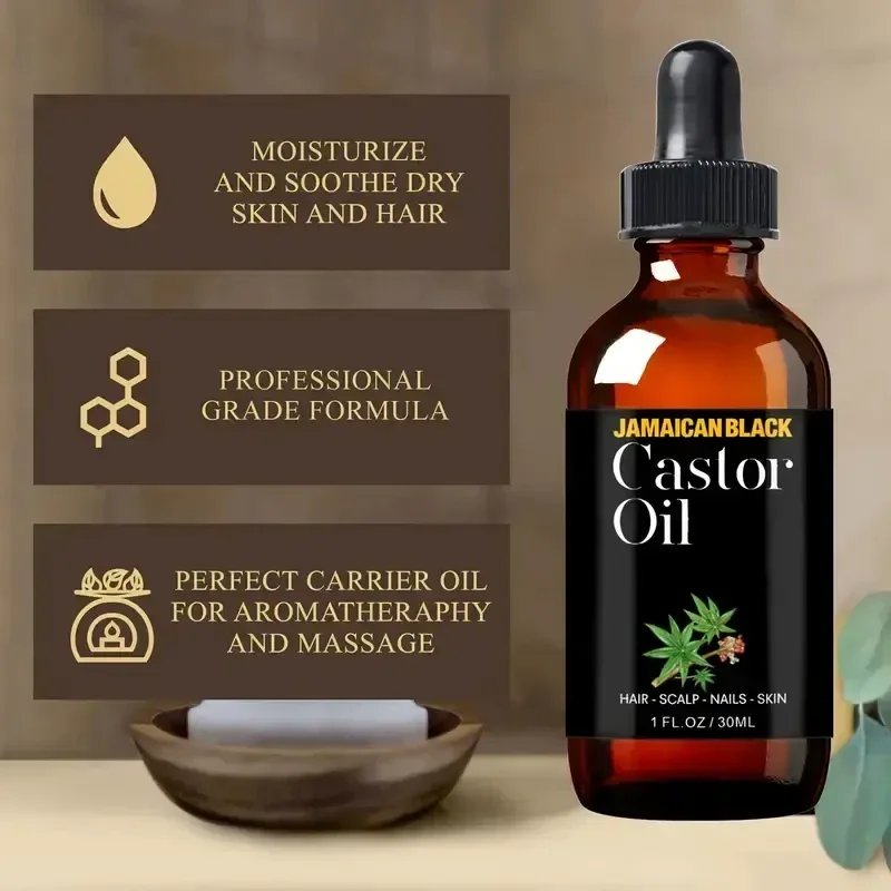 2pcs Jamaican Black Castor Oil, Cold Pressed Nourishing Hair Care, Hair, Eyebrow, Nails, Skin, Nourishes And Hydrates Hair, Ideal For Hair And Skin Care, Unisex Essential Oil For All Hair Types 1.01oz/1fl.Oz