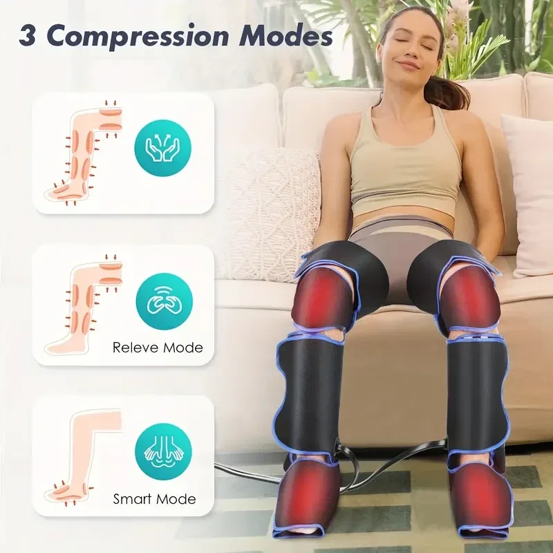 Heated Leg Massager] Heated USB-Powered Leg Massager for Improved Circulation | Relief for Feet, Calves, and Thighs with 3 Modes, Adjustable Fit up to 28.5 Inches, Blue & Black, Leg Relax Device